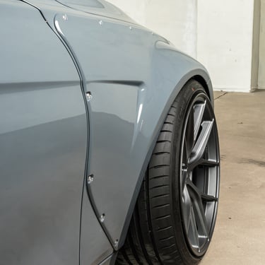 The front fenders of the F30 Race kit are specially made for sport. We made arches to fit the setup needed for drifting or racing. Front-wheel arches are positioned more to the front than the original ones that required Ackermann. The whole fender is 60mm wider than the stock one, allowing you to find room for a locking kit and wide wheels.