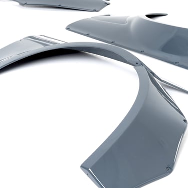 The difference between the Street and Race body kit is the Race front arches (+60mm) are wider than the Street (+45mm). Also, the Race front arch is moved forward 25mm for better clearance to fit aftermarket suspension travel (e.g. lock kit)